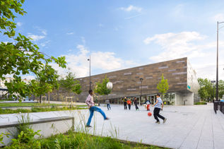 Construction du complexe sportif avec salle de danse, salles de combat et salle multisports, requalification d'une rue, création d'un mail piétonnier, d'un parvis, et construction d'un parking souterrain et de deux aires de stationnement.